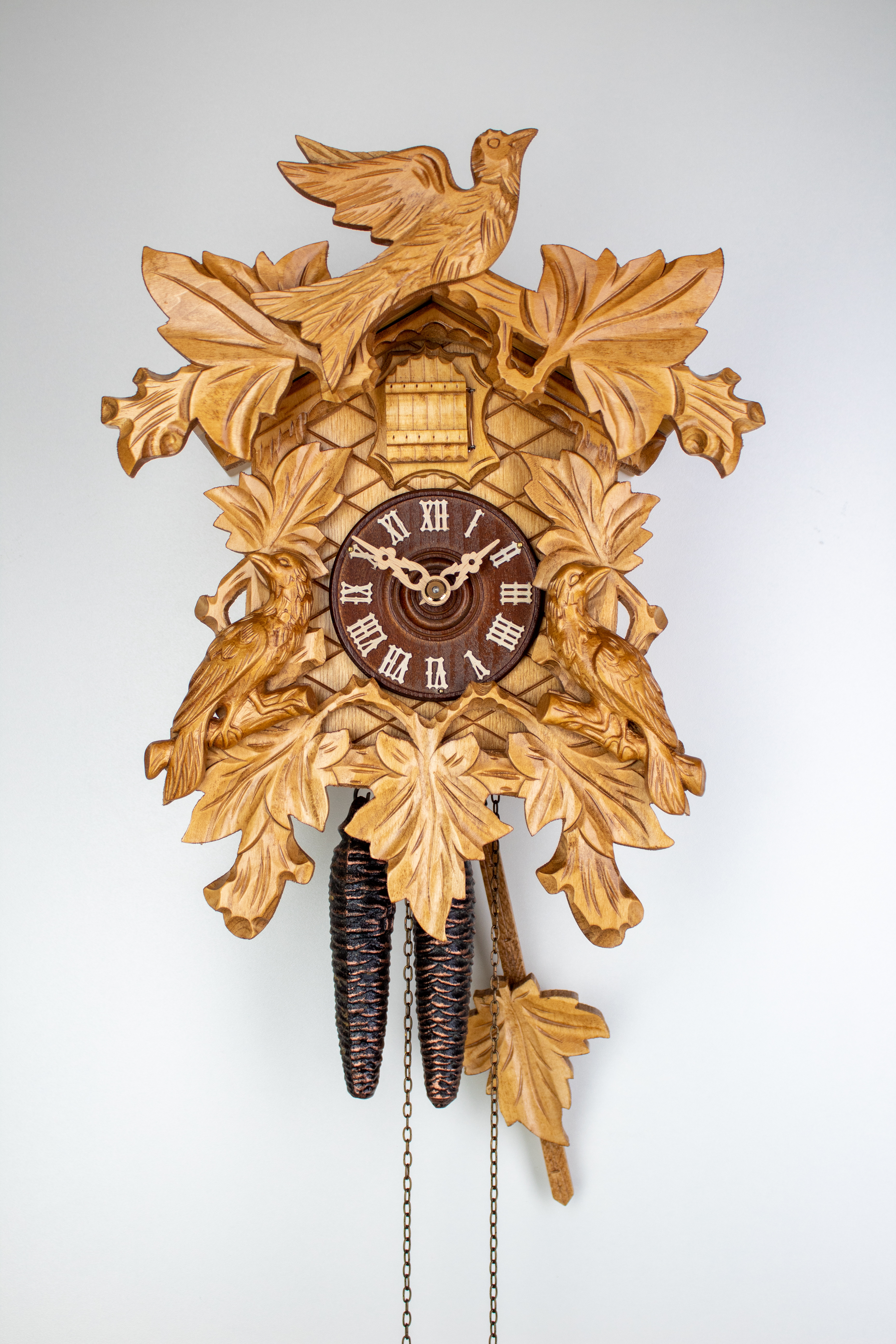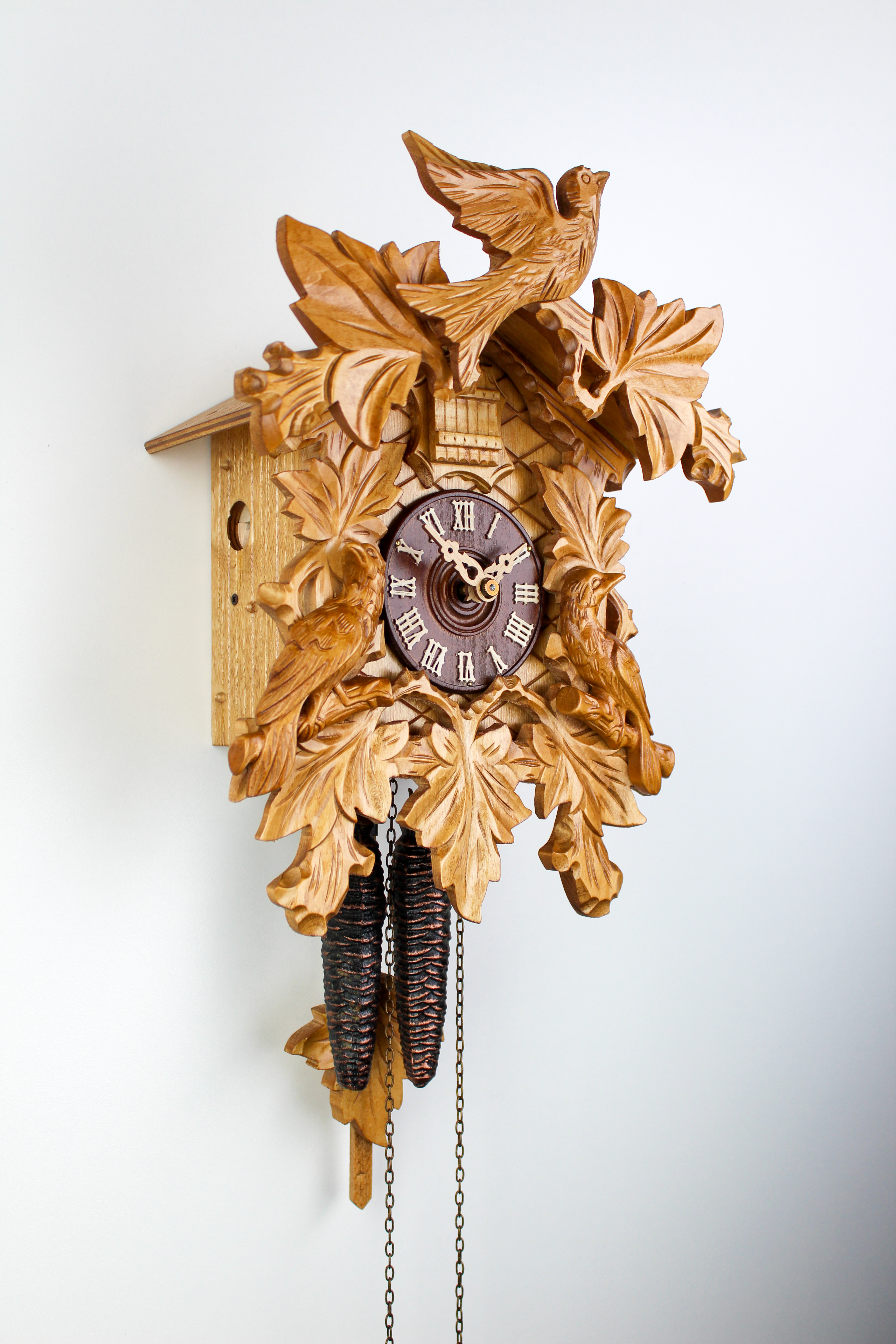 1 Day Cuckoo Clock vine leaves with cuckoo family and bird